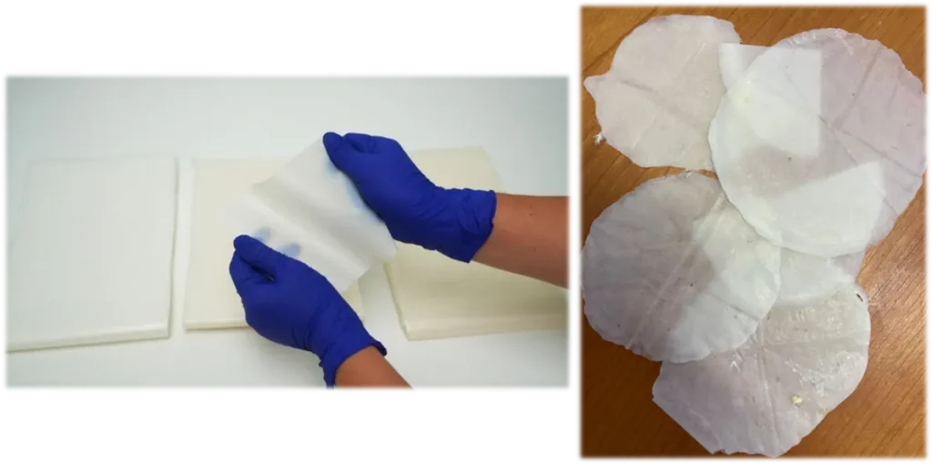 Figura 1. Fotografia ilustrativa dos filmes produzidos para embalagens alimentares, nas duas linhas de investigação da medida.